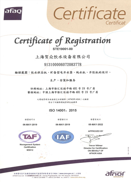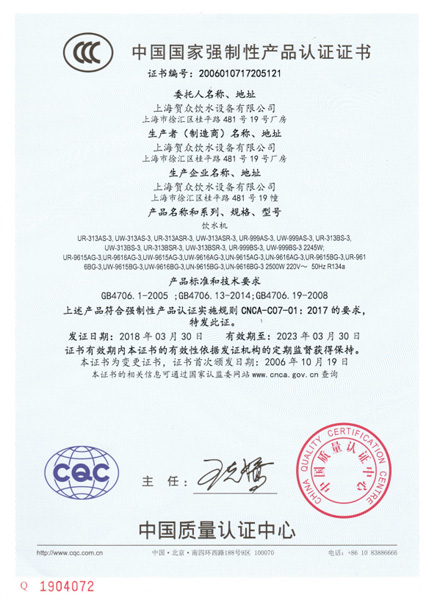 東莞市賀一飲水設備有限公司為賀眾牌飲水設備東莞授權總代理商,證號24019,負責上海賀眾飲水設備所產制的賀眾牌相關產品的銷售以及售后服務。